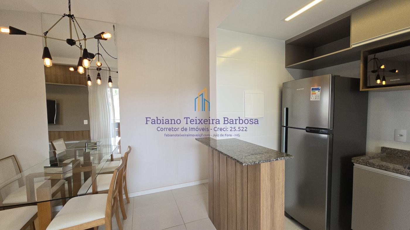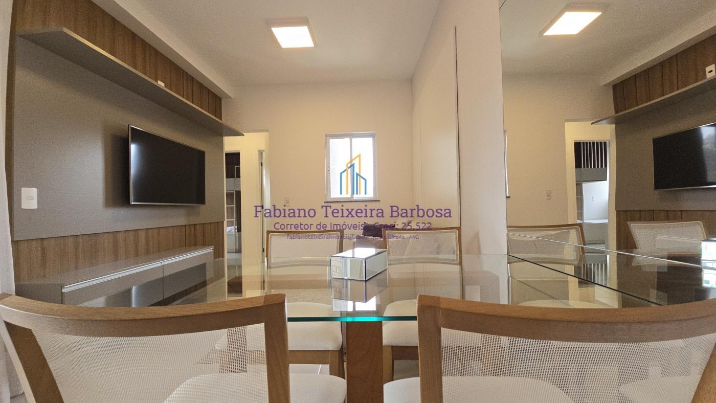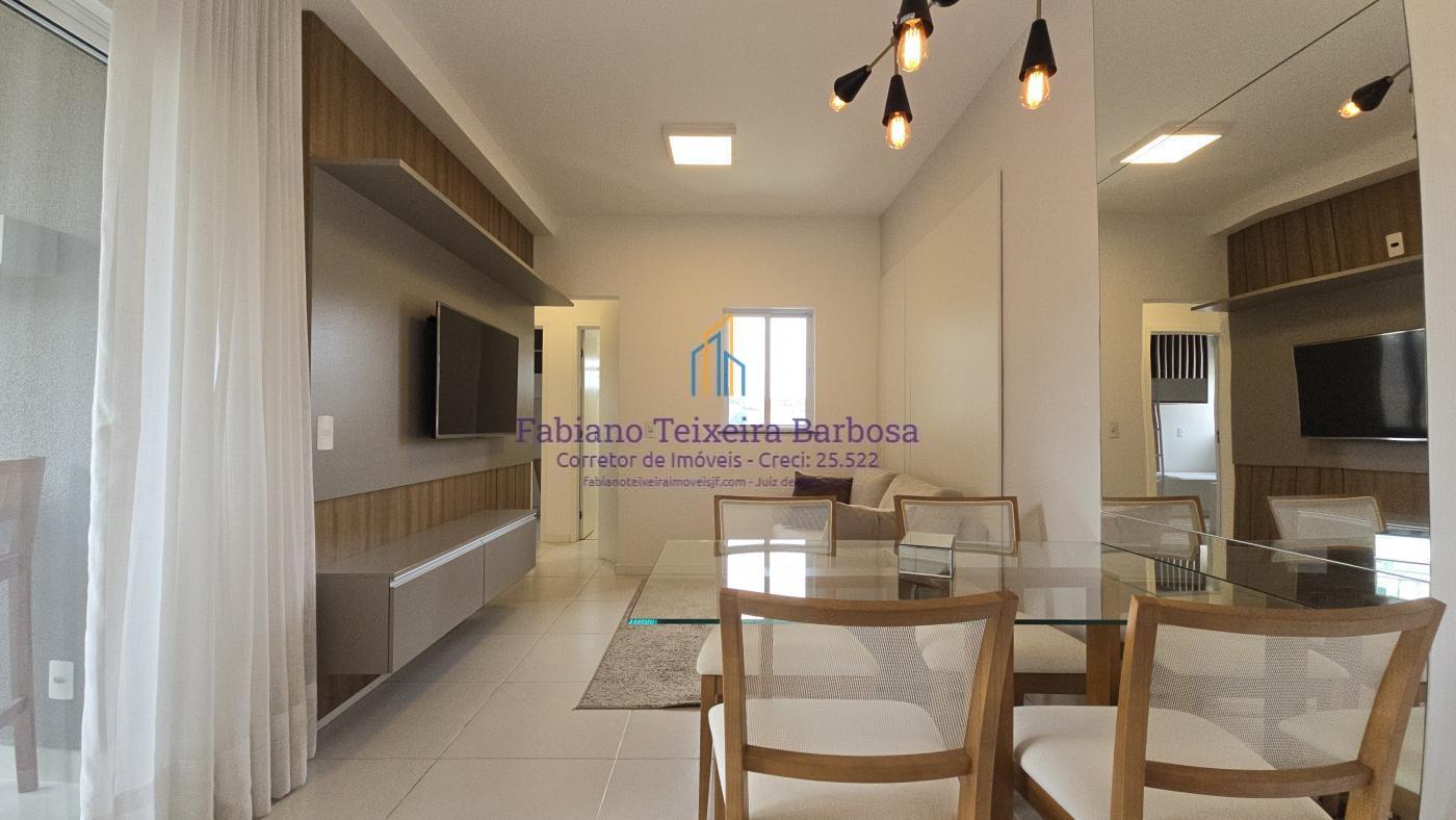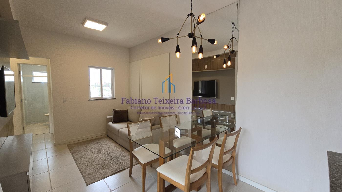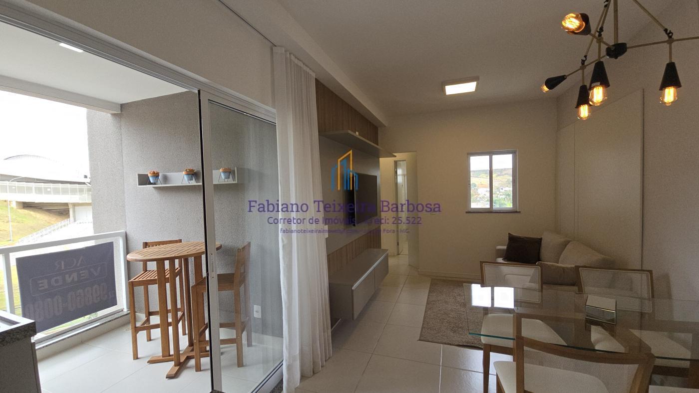 Apartamento novo mobiliado disponível para venda. Oportunidade, totalmente mobilidado, fica tudo que está nas imagens. À venda 100% mobiliado. Pronta entrega aceita financiamento bancário. Apto fica a a apenas um kilometro da UFJF a 6 minutos do Centro. Conta com sala três ambientes com a varanda gourmet, cozinha americana, dois dormitórios, sendo uma suite, e um banheiro social. Todo, todo, mobiliado e planejado, Fica tudo.  O apto possui uma vaga de garagem coberta e numerada.