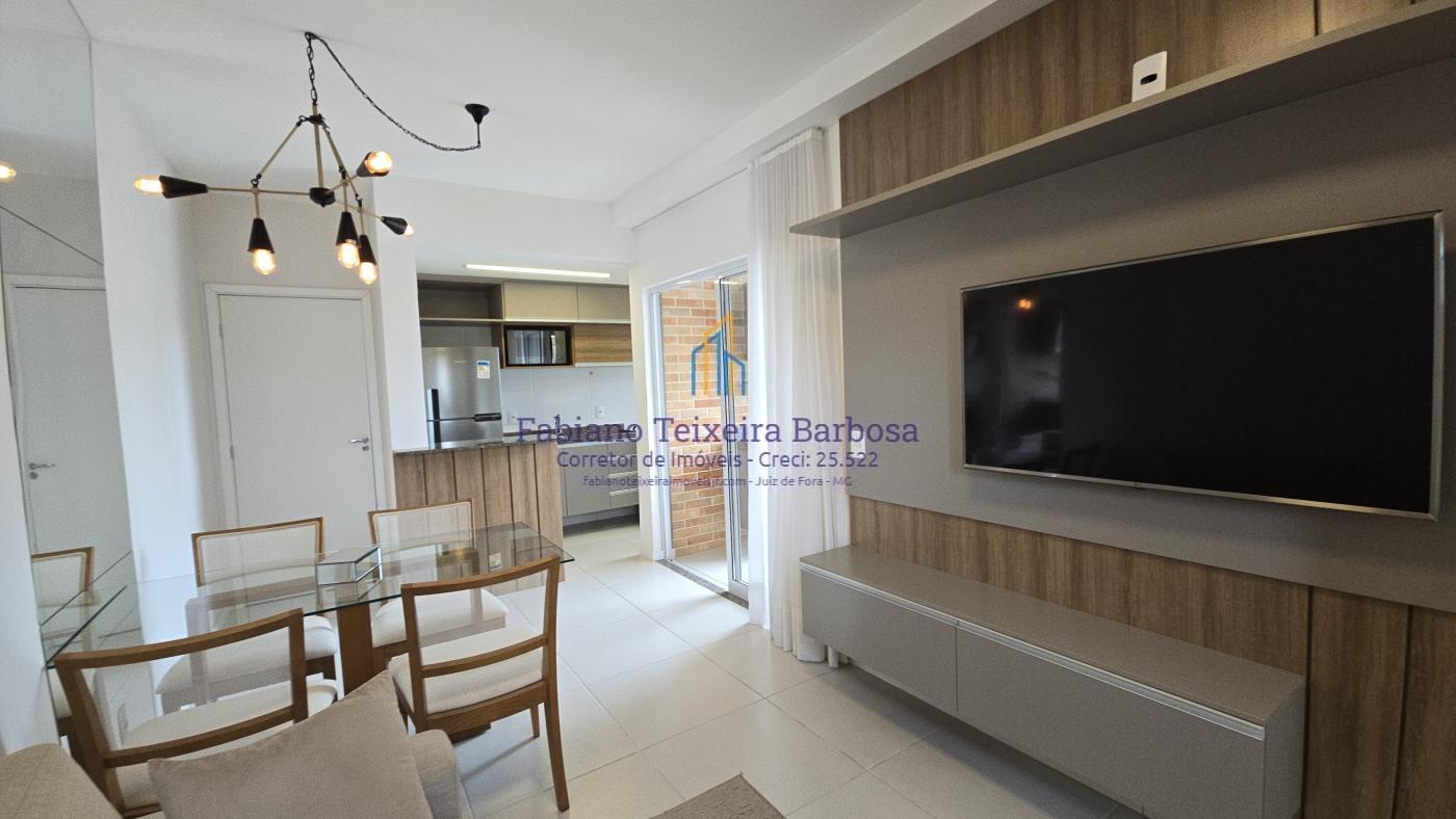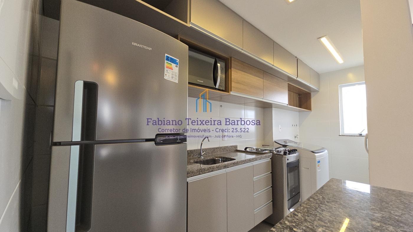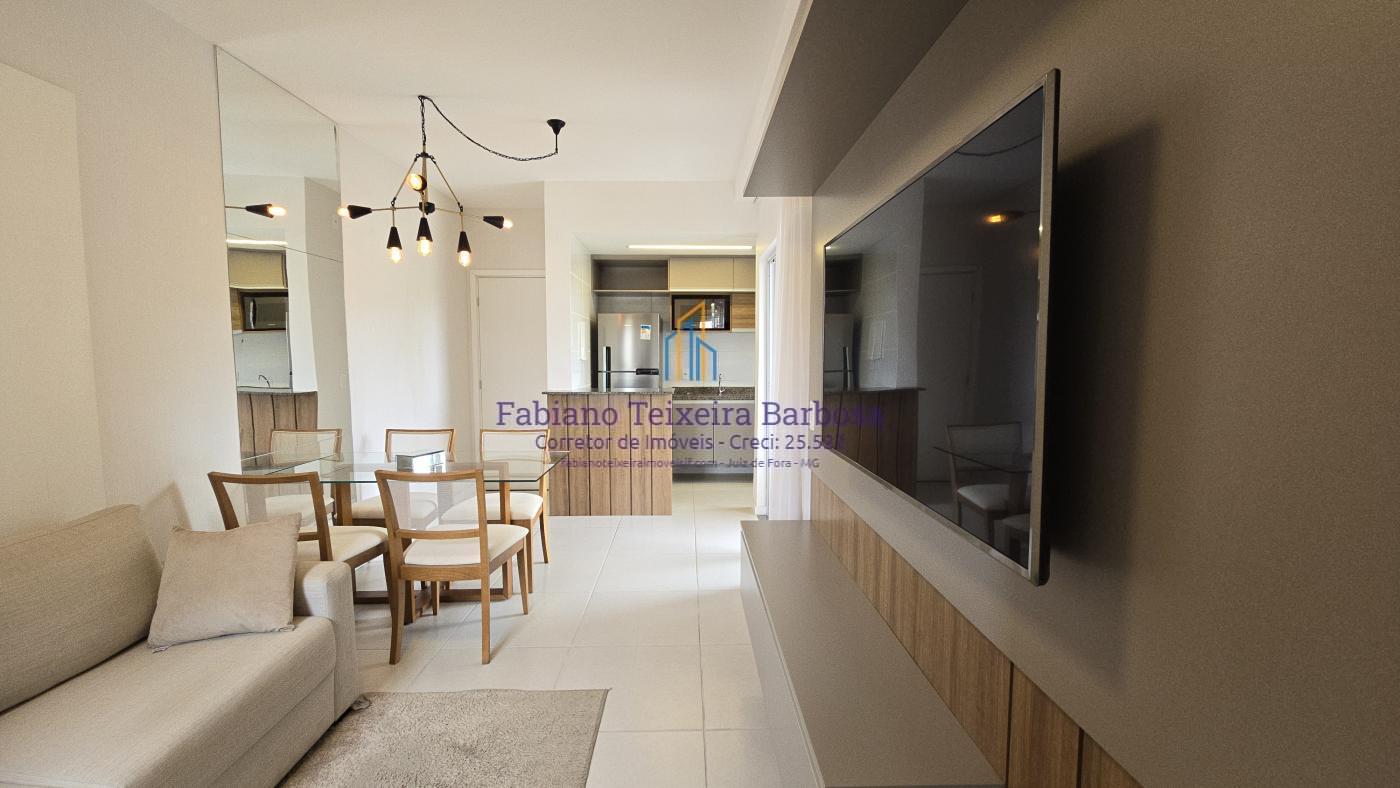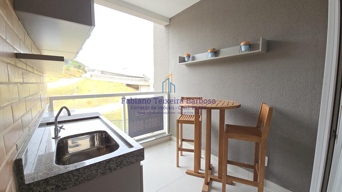 Apartamento novo mobiliado disponível para venda. Oportunidade, totalmente mobilidado, fica tudo que está nas imagens. À venda 100% mobiliado. Pronta entrega aceita financiamento bancário. Apto fica a a apenas um kilometro da UFJF a 6 minutos do Centro. Conta com sala três ambientes com a varanda gourmet, cozinha americana, dois dormitórios, sendo uma suite, e um banheiro social. Todo, todo, mobiliado e planejado, Fica tudo.  O apto possui uma vaga de garagem coberta e numerada.