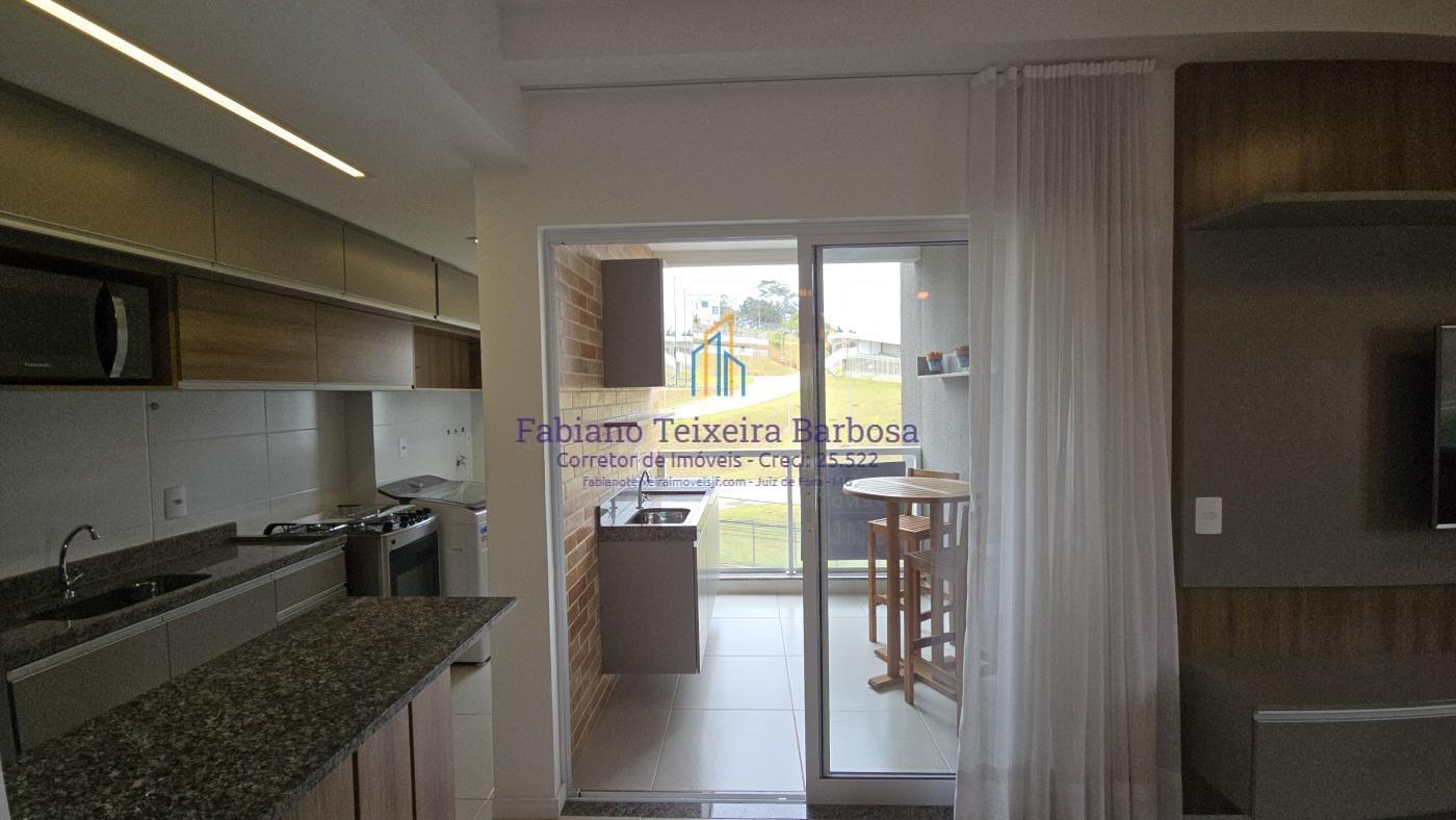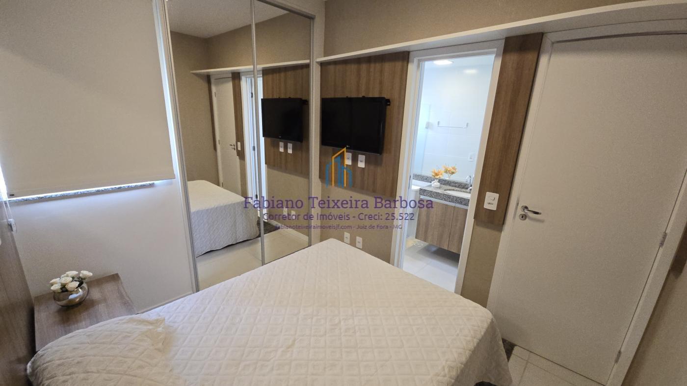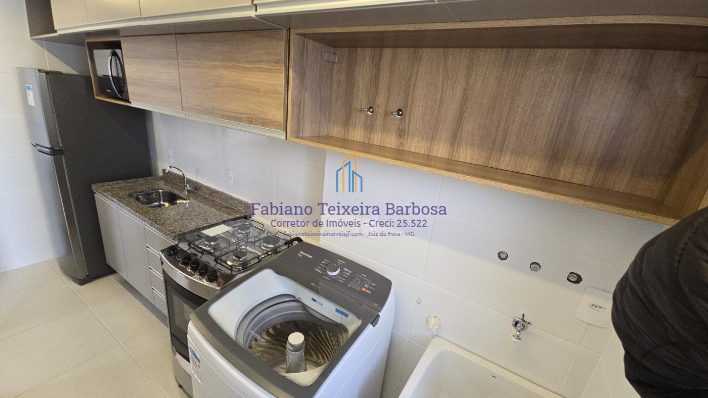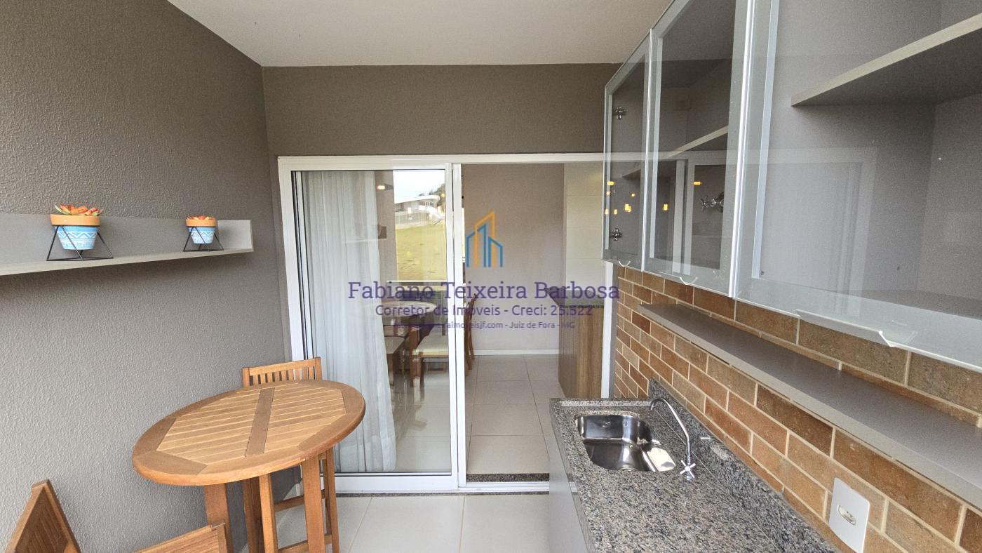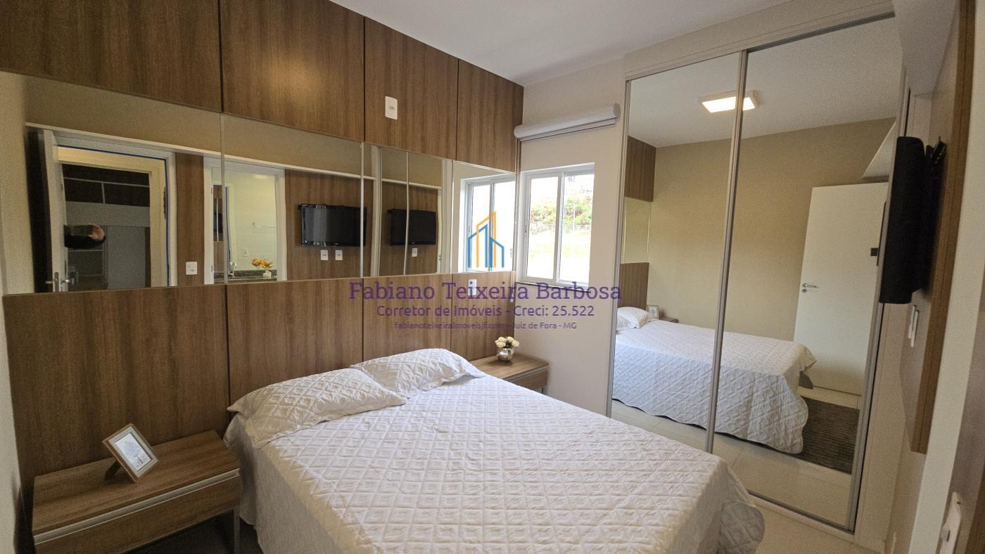 Apartamento novo mobiliado disponível para venda. Oportunidade, totalmente mobilidado, fica tudo que está nas imagens. À venda 100% mobiliado. Pronta entrega aceita financiamento bancário. Apto fica a a apenas um kilometro da UFJF a 6 minutos do Centro. Conta com sala três ambientes com a varanda gourmet, cozinha americana, dois dormitórios, sendo uma suite, e um banheiro social. Todo, todo, mobiliado e planejado, Fica tudo.  O apto possui uma vaga de garagem coberta e numerada.