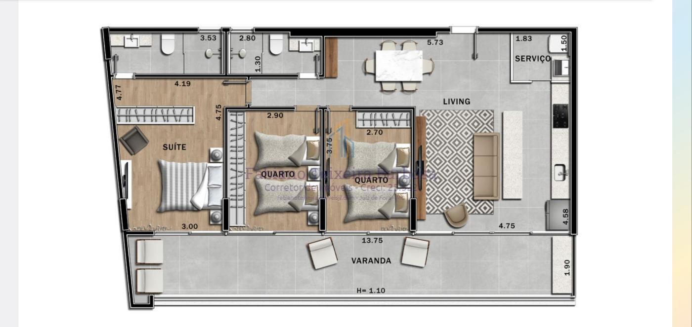 Lançamento com 3 dormitórios na parte plana do Bairro São Mateus, local valorizado pela proximidade do Centro e variedade de comércio. Com varanda gourmet e vagas de garagem soltas, Aceita financiamento CEF durante a obra. Total Garantia para voce.
