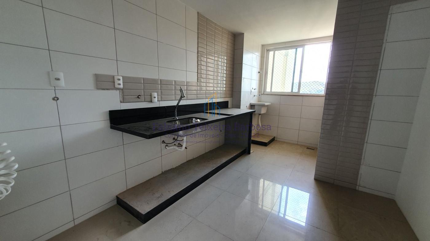 suite, um banheiro social, cozinha e área de serviço. Duas vagas de garagem numeradas.