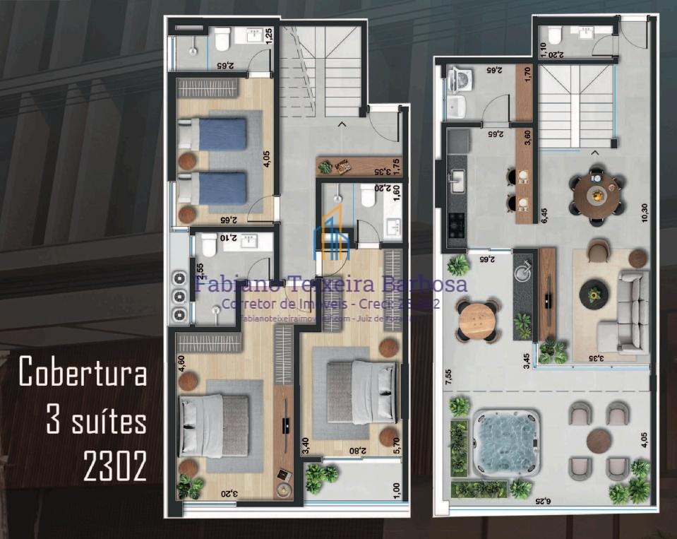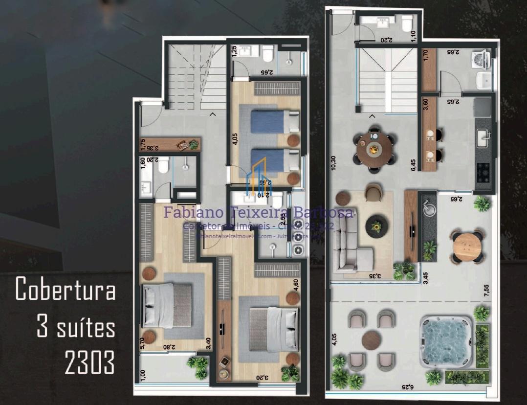 Cobertura Nova 3 suites, 4 vagas, área gourmet, área de lazer completa no Centro de JF por R$ 1.749.900 - Parcela direto