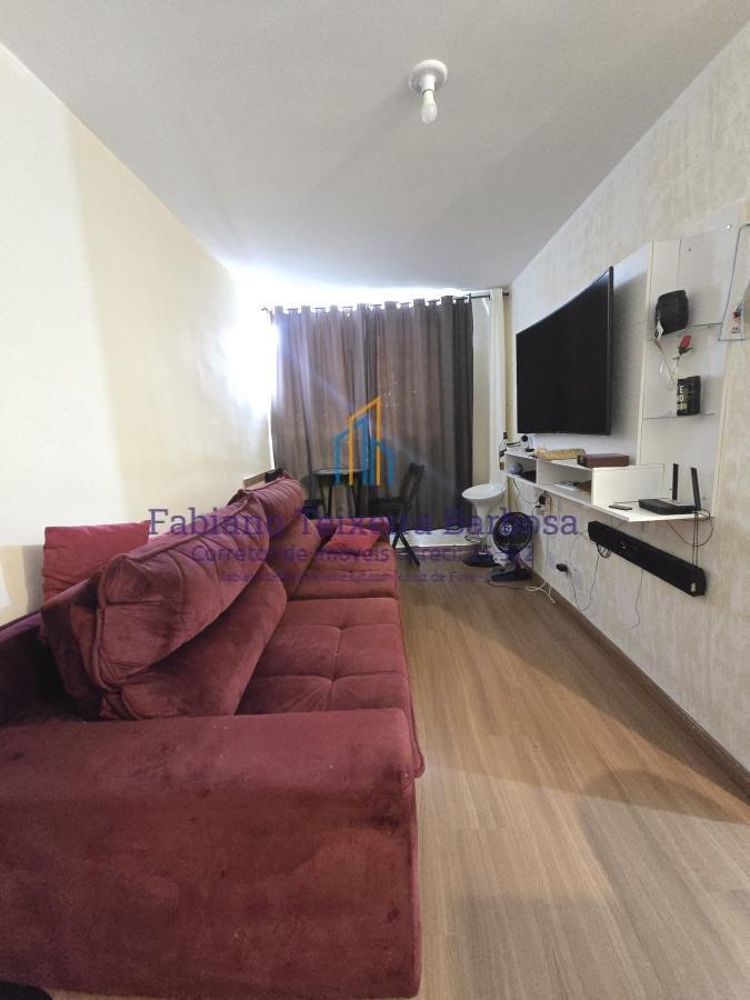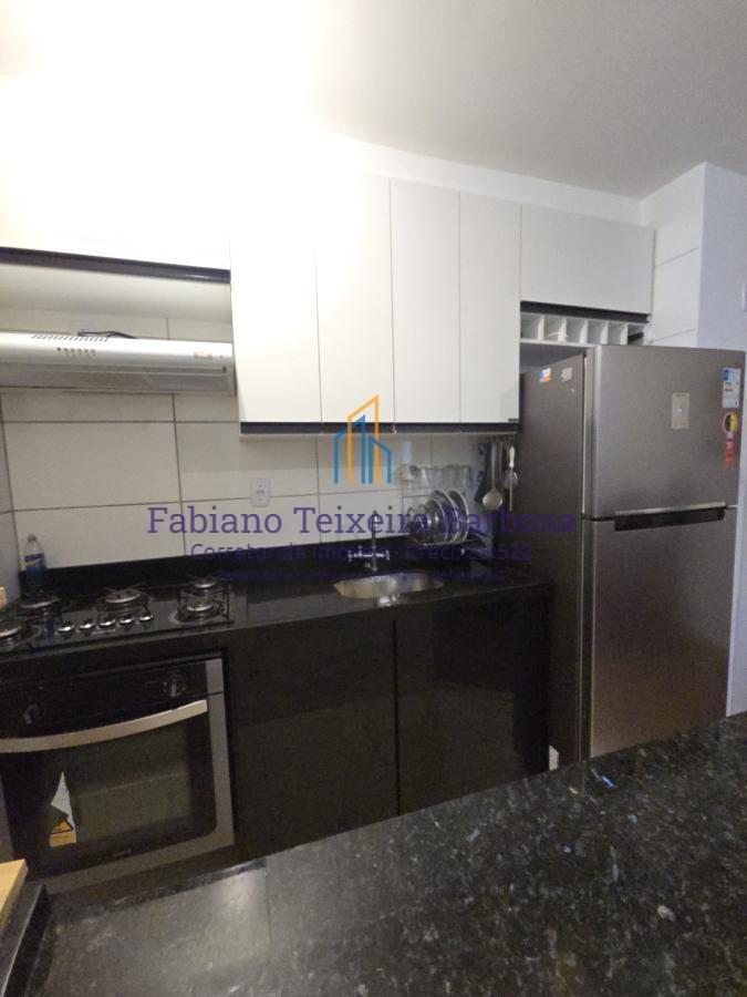 O apartamento recebeu um up grade em acabamentos, possui uma sala dois ambientes com cozinha americana e armários planejados, forno, cooktop, coifa, prateleiras, fica tudo. São dois dormitórios , um com ar condicionado split instalado, quente e frio, também fica, aparelho novinho, além de um banheiro social com blindex. Andar mediano, nem alto, nem baixo, vista definitiva, com uma vaga de garagem coletiva descoberta.