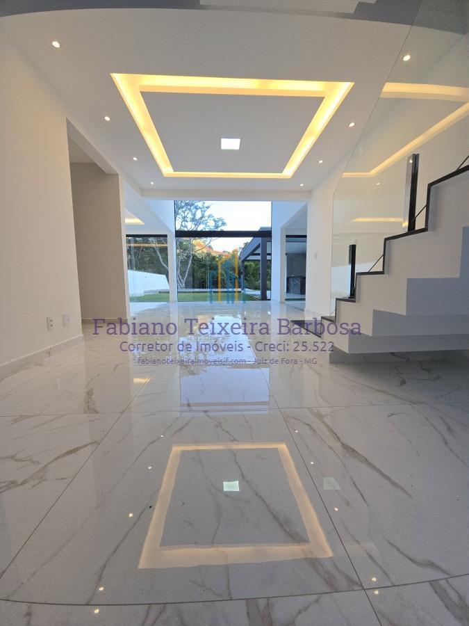 Casa Nova espetacular disponível para venda no Condominio Portal do Aeroporto, acabou de ficar pronta, ampla, espaçosa, ventilada, privativa com uma linda vista para uma área de reserva florestal dentro do próprio condominio, que é reconhecido pelas casas de alto padrão, possui como área comum um bosque com amplo jardim , pista de caminhada, campo de futebol gramado, playground para crianças, portaria 24 horas, todo monitorado por câmeras, muito seguro, todo asfaltado e arborizado, possui ainda uma Van que busca e leva os funcionários e as empregadas das casas dentro do condominio até a portaria e vice versa que tem linhas de ônibus urbano até o centro o tempo todo. Fica a 15 minutos do Centro, a 10 minutos da UFJF e do Independência Shopping.